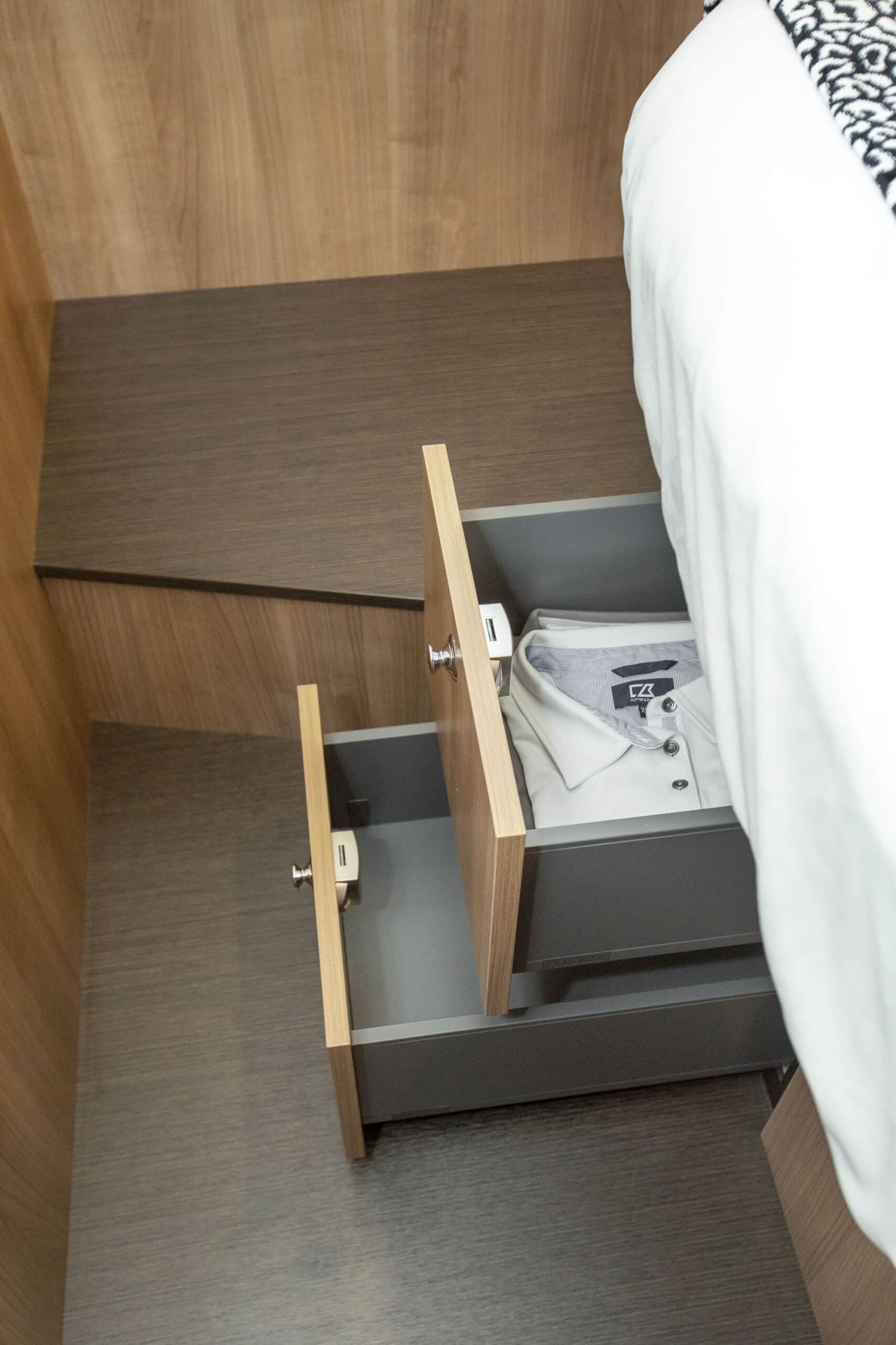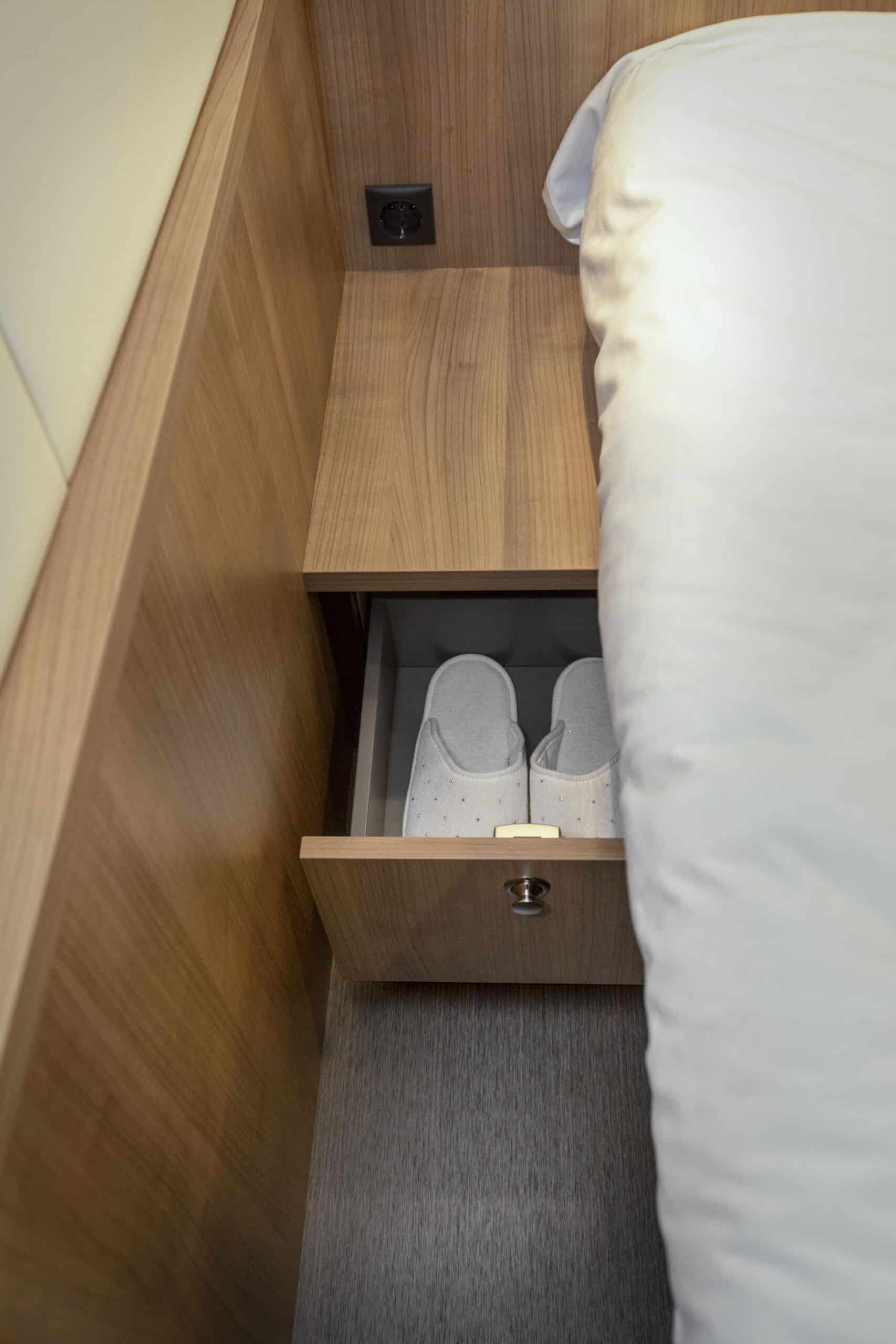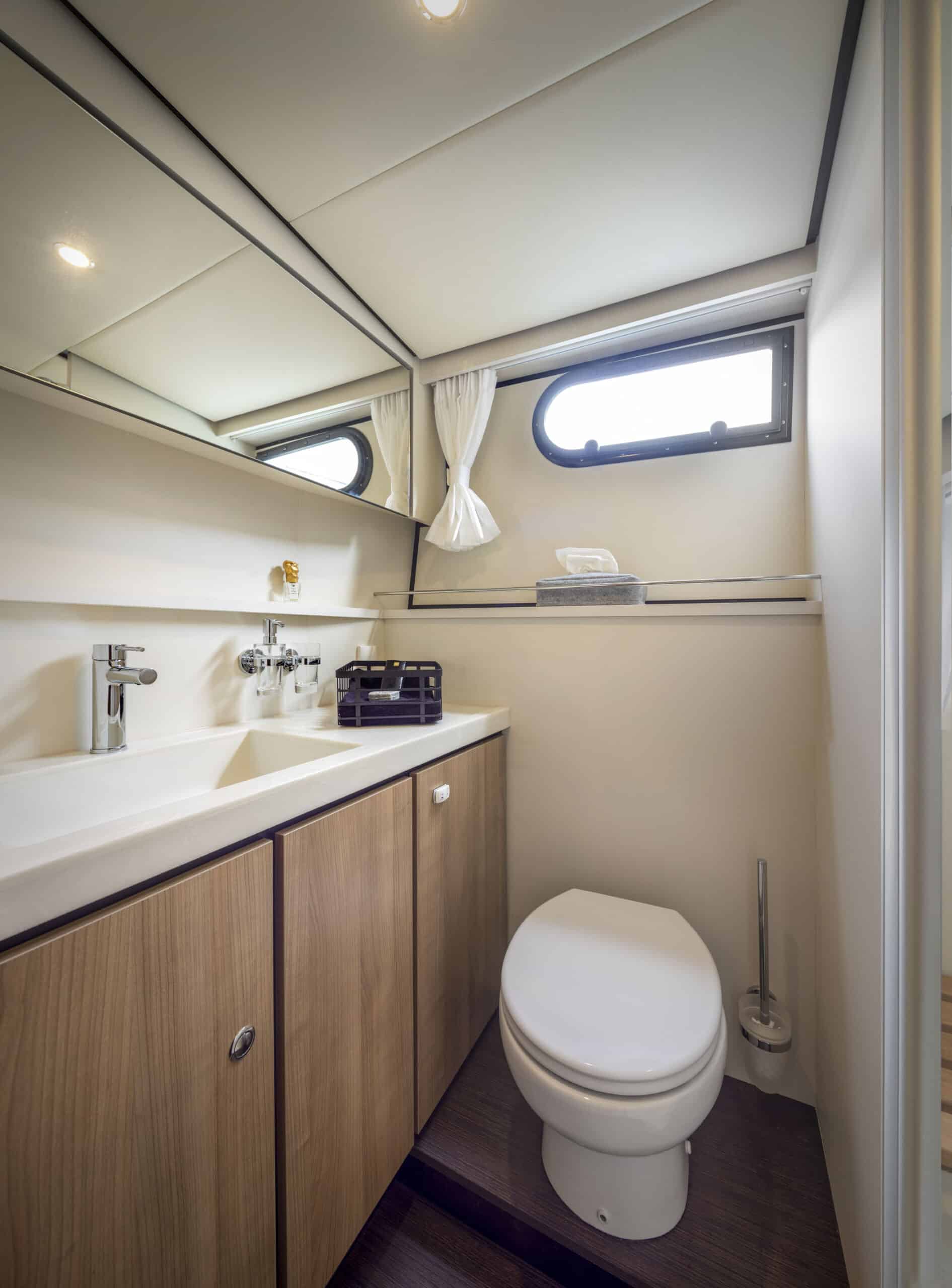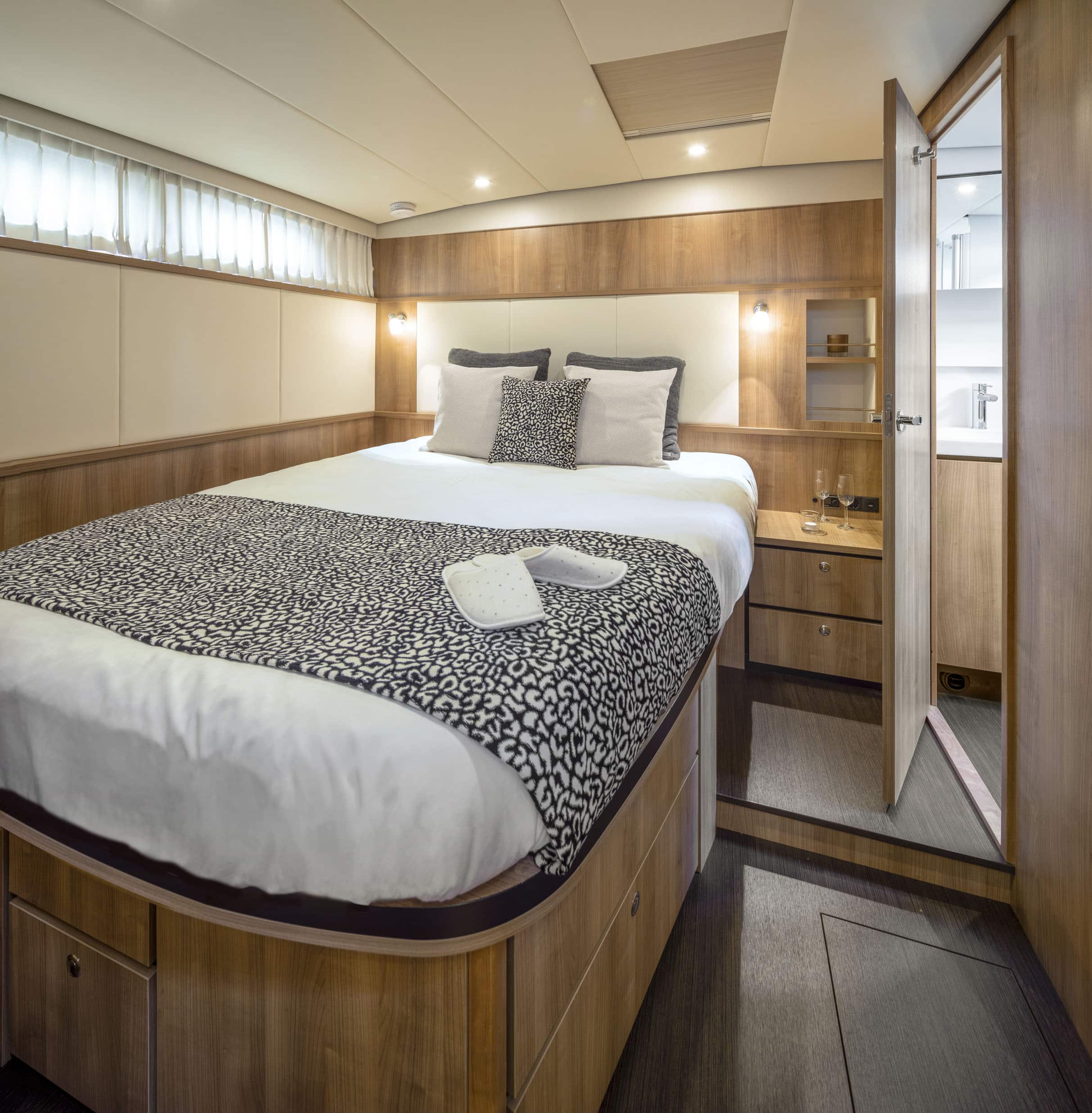 Die Linssen Motoryacht 40.0 SL AC ist eine großzügig geschnittene Yacht mit zwei identischen Kabinen, jeweils mit einem Doppelbett, zwei Badezimmern und zwei elektrischen Toiletten. Darüber hinaus verfügt dieser Yachttyp über eine geräumige dritte Kabine mit zwei Einzelbetten und viel Stauraum.